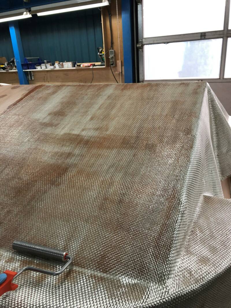 Glasweefsel aanbrengen.